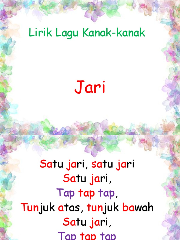 Minta mereka membaca sambil menyanyi lagu tersebut. Informasi Lagu Taman Kanak Kanak. Ia mengandungi 17 lirik lagu kanak-kanak Dapatkan pelbagai muaturun percuma di.